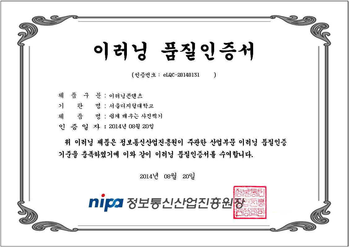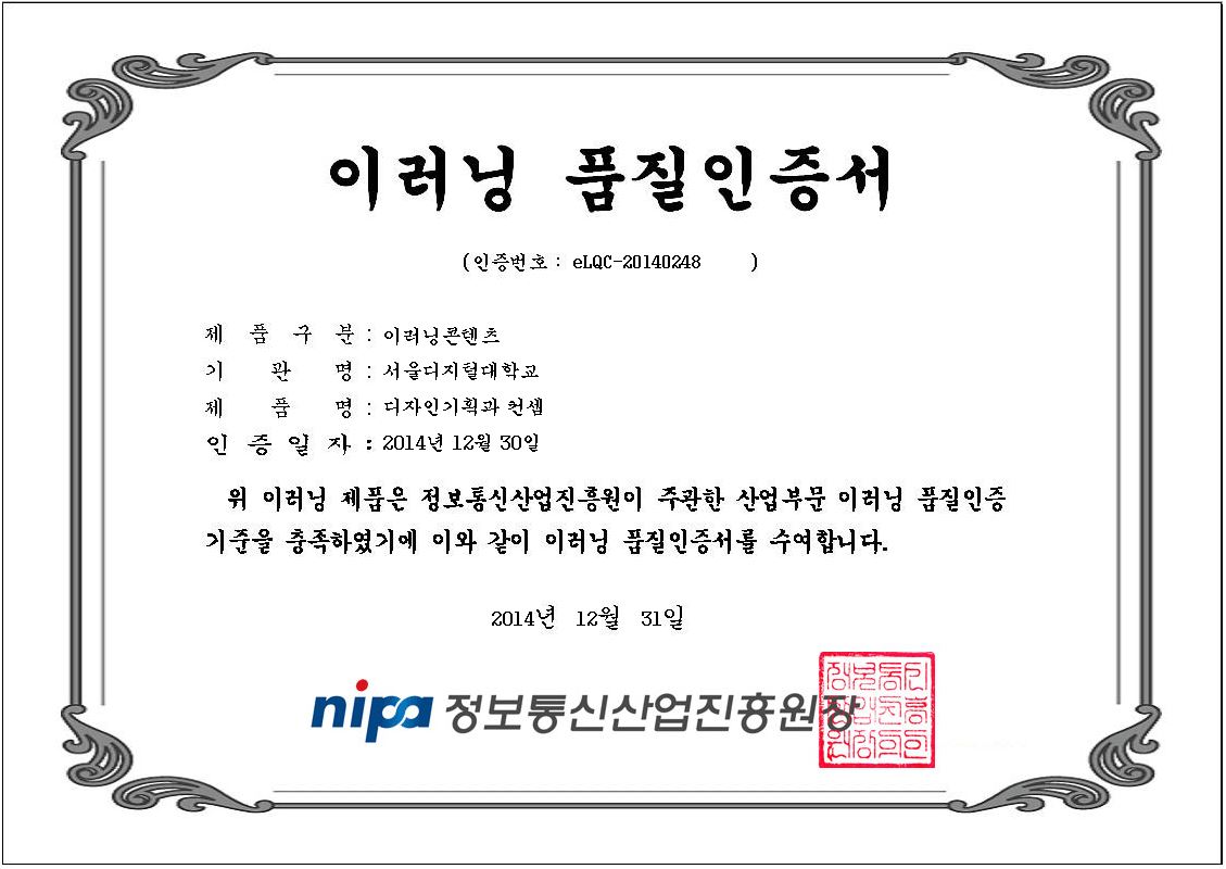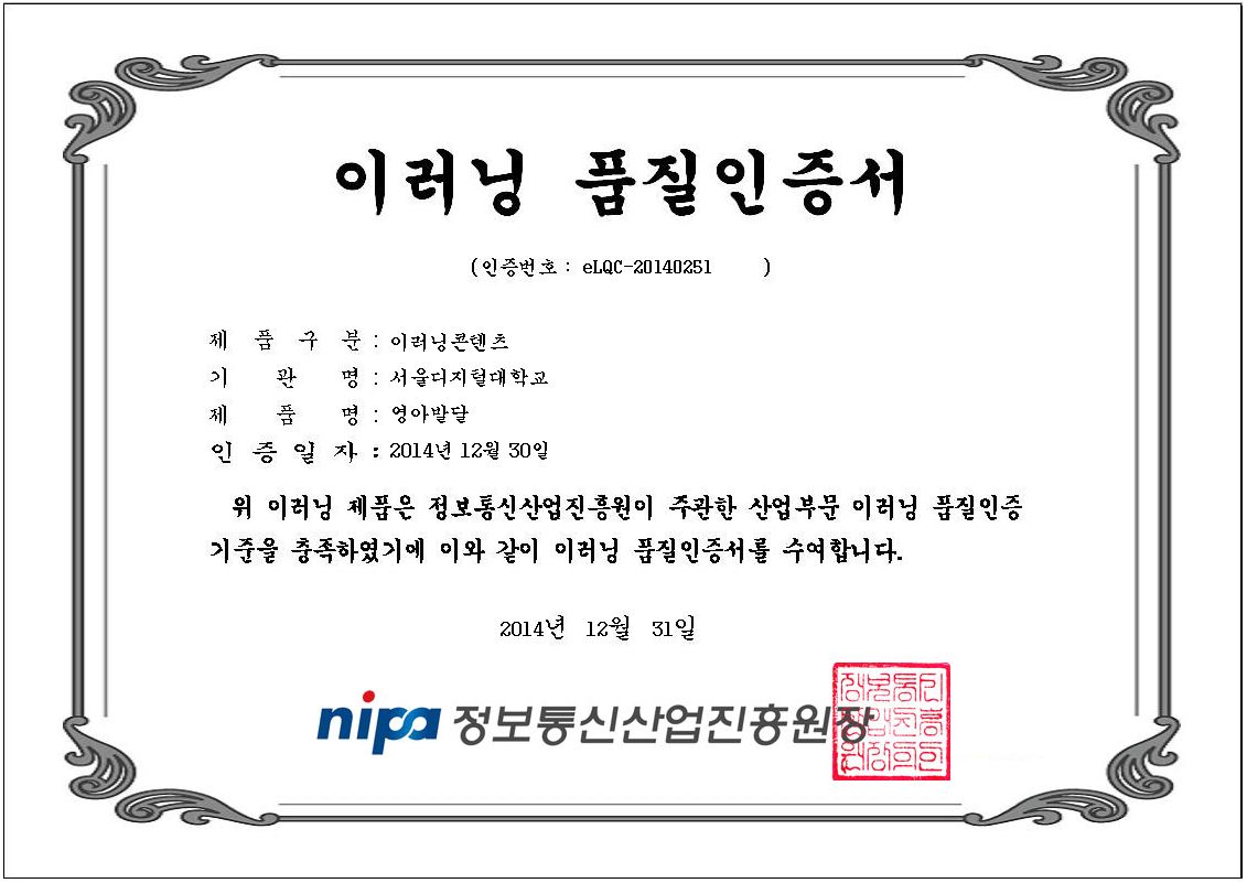 2014학년도 정보통신산업진흥원 품질인증 획득