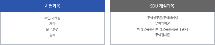 영역별·난이도별 학년·학기별 자격증별 학습 로드맵 관세사 물류관리사 국제무역사1급 국제무역사 2급 CPI(수입관리사) 무역영어 인증서별 학습 로드맵 무역마케팅 코스 국제비즈니스 계약 코스 무역운송 코스 무역결제 코스 무역클레임 코스 국제비즈니스 전문가 코스 물류운송 코스 물류포장 코스 물류보관하역 코스 물류포워딩 코스 물류전문가 코스 통관실무 코스