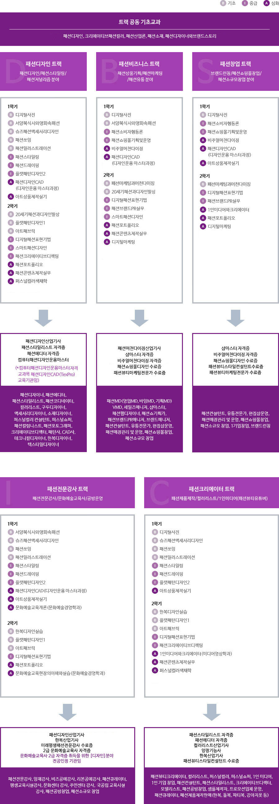 - B : 패션비즈니스 트랙 (패션상품기획/패션마케팅/패션유통분야)